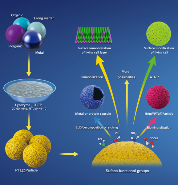 Ruirui Liu, Jian Zhao, Xinyi Hu, Dong Wang, Xu Zhang, Peng Yang*, One-Step Assembly of a Biomimetic Biopolymer Coating for Particle Surface Engineering. Adv. Mater., 2018, DOI: 10.1002/adma.201802851