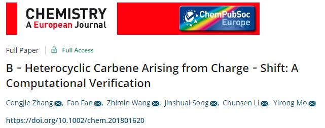 该研究工作“B-Heterocyclic Carbene Arising from Charge-Shift: A Computational Verification”首次将前期所研究分子命名为“硼杂环卡宾”,而且发表在国际学术期刊《欧洲化学》上(全文见: //dx.doi.org/10.1002/chem.201801620)。