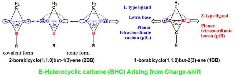 该研究的前期工作表明BHC有两种异构体:1-borabicyclo(1.1.0)but-2(3)-ene (1BB)和2-borabicyclo(1.1.0)but-1(3)-ene (2BB)。而且,该类分子作为配体被应用到形成含ptC和ptB的配合物、活化C-H键的催化剂、以及受阻Lewis对中的Lewis碱。相关工作详见:J. Phys. Chem. A, 2012, 116, 9123-9130. Organometallics, 2013, 32, 7083-7089. J. Phys. Chem. A, 2015, 119, 8950-8957. ACS Omega, 2016, 1, 620-625. Phys. Chem. Chem. Phys., 2017, 19, 2417-2424。